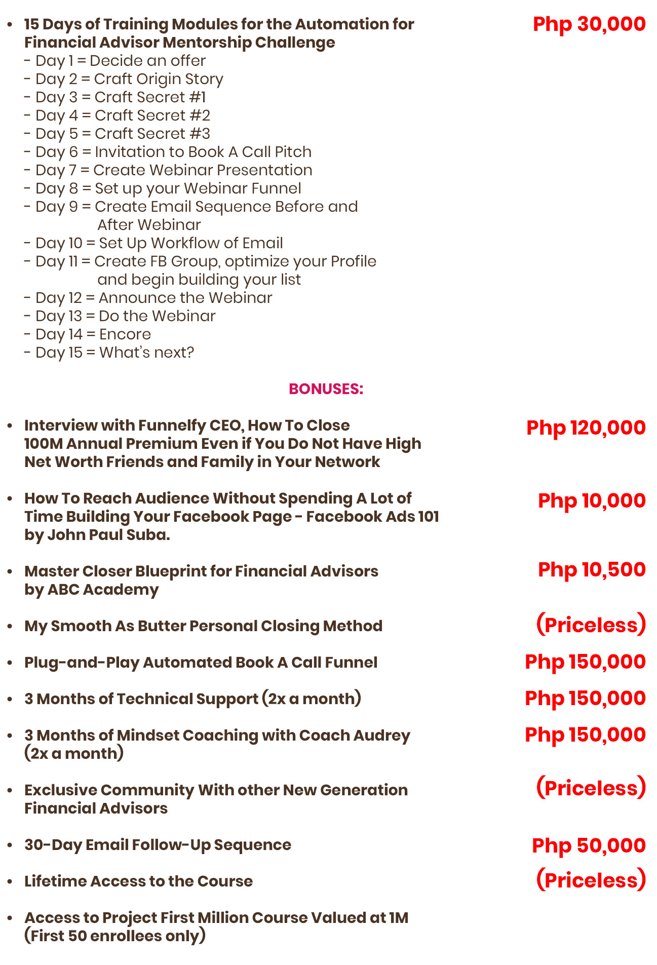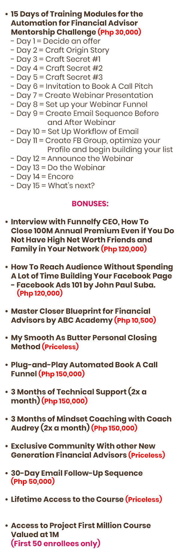 And even after that, you’ll be part of an EXCLUSIVE Facebook group where there are hundreds of Financial Advisors, just like you, who will help you out in every part of your business.